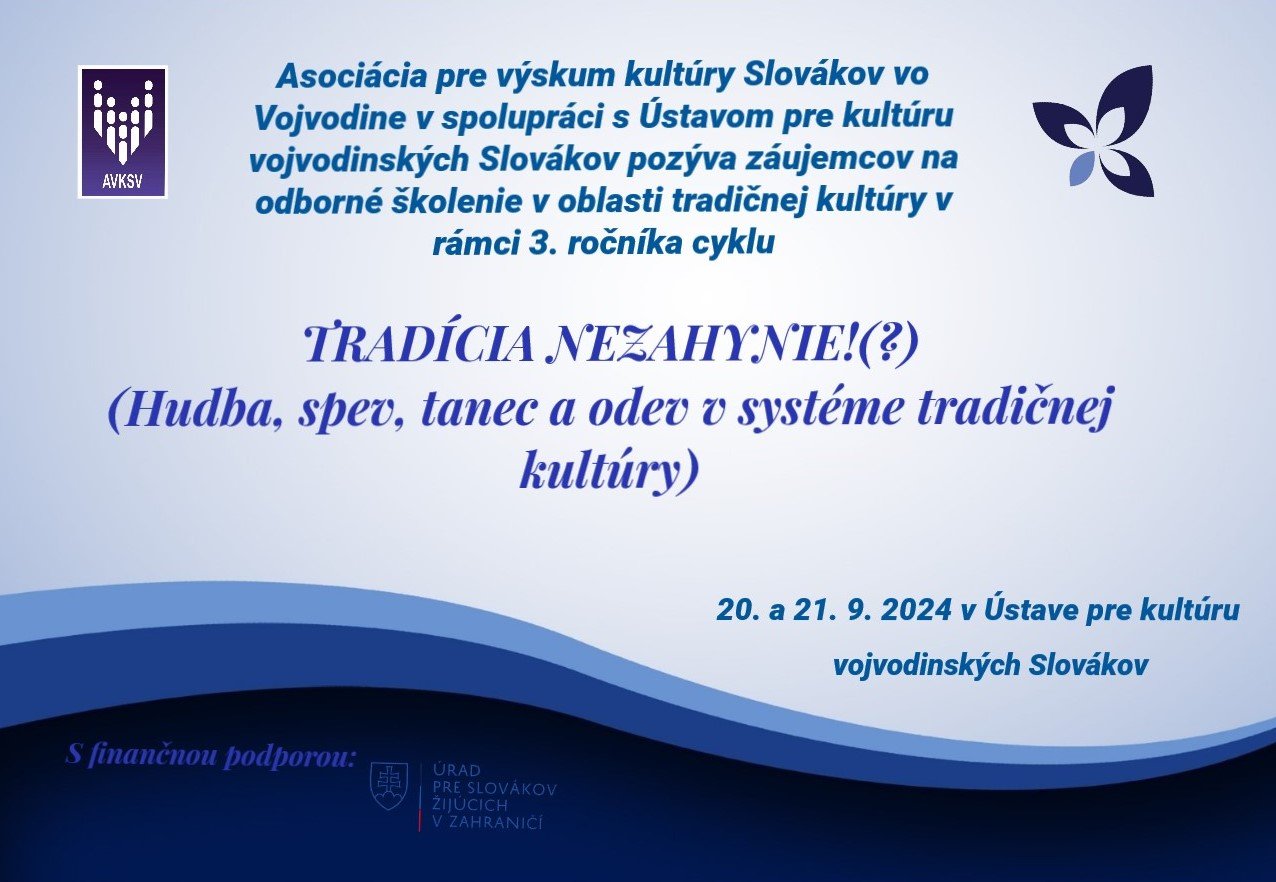 Asociácia pre výskum kultúry Slovákov vo Vojvodine v spolupráci s Ústavom pre kultúru vojvodinských Slovákov pozýva záujemcov na odborné školenie v oblasti tradičnej kultúry v rámci tretieho ročníka cyklu